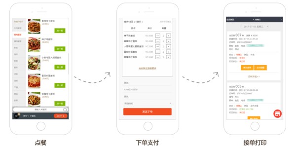 上线微信小程序,顾客随时随地点菜下单,在线支付自动接单自动打印。