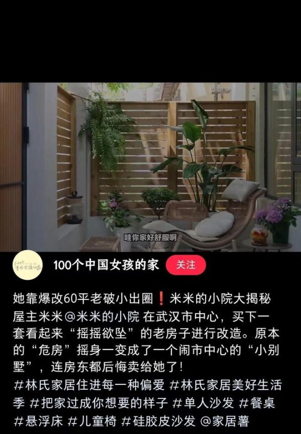 在明星力的影像之外,林氏家居同样注重垂类圈层的影响力。因此,联动高强影响力的IP——100个中国女孩的家,以定制内容进行精准沟通。