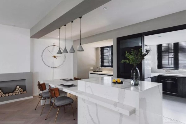 把餐桌和岛台结合起来,让餐厅更实用,也更有情调