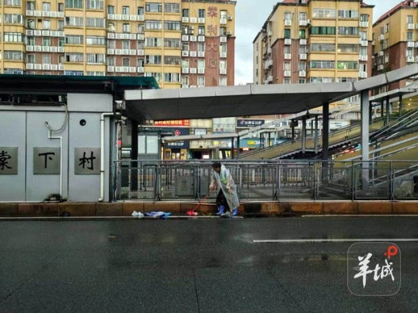 广州市天河区棠下BRT站,环卫工人在“五停”措施解除后进行街面保洁