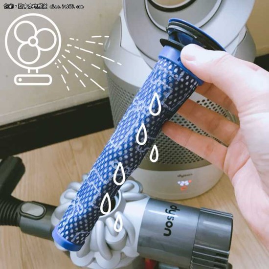 (3)吸尘器用久了之后会有味道, 这时,除了把滤网里面的那些细微粉尘倒干净,还可以取出吸尘器中间的滤芯,用水洗干净之后晾干(一定要完全晾干,可以用暖风机吹吹)。 如果想要味道好闻一点的,可以在滤芯上喷点香水或滴几滴精油。