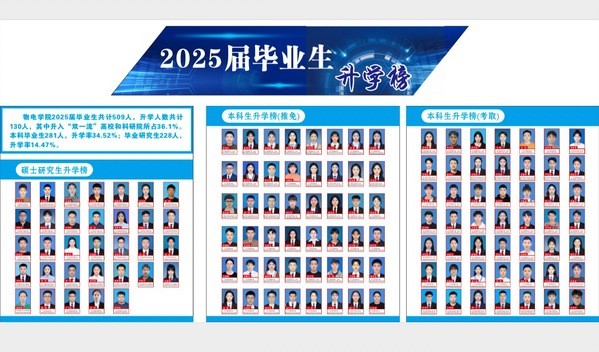 在入学报到现场,学院领导班子成员和系所中心负责人、研究生导师、班主任、辅导员以及学生骨干、志愿者们以最饱满的精神状态迎接新生,耐心解答新生和家长的各种疑问,引导新生完成各项入学手续,用实际行动让新生们感受到“物电大家庭”的温暖。同时,制作了“2025届毕业生升学榜”,展示学院人才培养成果,教育引导新生向榜样学习,确立发展目标,激发学习动力。