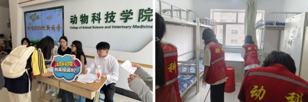 动物科技学院以“学校精心、学生舒心、家长放心”为宗旨,制定了《动物科技学院2024年迎新工作方案》。学院择优选配2024级新生班主任,班主任博士化率100%,选拔新生“学长辅导员”11名,帮助新生尽快渡过新生适应期,科学规划大学生活。组建了“党员服务团队”,排查、清扫2024级新生寝室,排查寝室109间,处理物品问题15个,努力为新生营造安全清洁、温馨舒适的住宿环境,让入住新生感受“家”的温暖。同时,学院大力优化迎新工作流程,制作基础信息收集表,提前收集基础信息,简化报到环节,新生到校后即可享受“一站式”入学报到服务,快速完成报到手续,轻松开启大学生活。