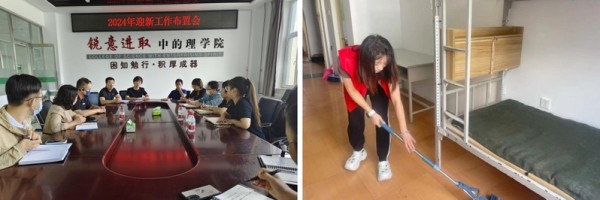 理学院为保障迎新工作有序顺利开展,有效落实各项工作安排,展示理学院良好精神风貌,先后召开迎新工作筹备会、迎新工作布置会,制定详细的迎新工作方案。学院领导、班主任、辅导员提前走进新生寝室,详细检查了解新生宿舍内外的硬件设施,并组织学生党员志愿者进一步整理寝室卫生,让新生在细微之处感受温暖。学院组建了一支以学生骨干、学生党员为主的迎新志愿者队伍布置迎新会场,师生努力做好提前报到学生的接待工作,保障新生顺利入学,努力让新生在与学校的第一次亲密接触中,建立起满满“归属感”。