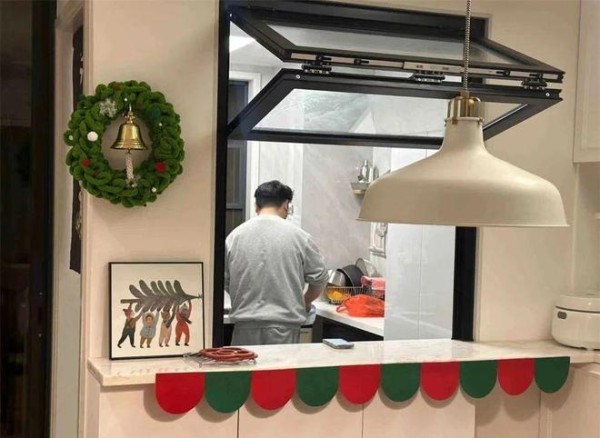 权衡下,厨房折叠内窗便诞生了,在厨房一面墙开内窗,做一个小小的吧台,无论开关,厨房场景都能一目了然,让家里显得更加通透宽敞。