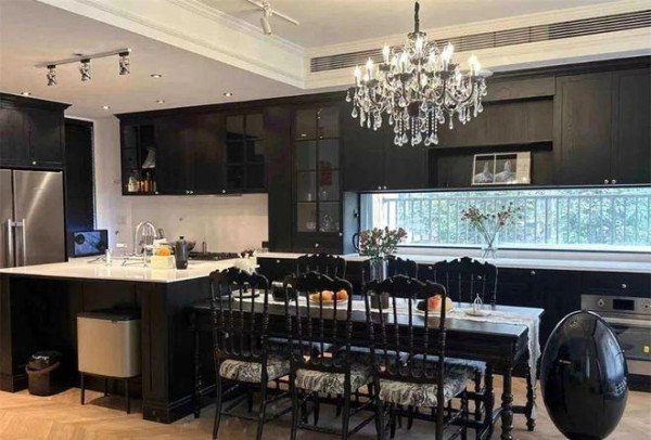 实际上,在这类大户型装修中,开放式厨房+中岛餐桌的设计比较常见,但现在的装修风格,可谓是多变得很,从极简诧寂风到复古,都能驾驭,稍微一装修,就比分开的开放式厨房+餐厅好看。