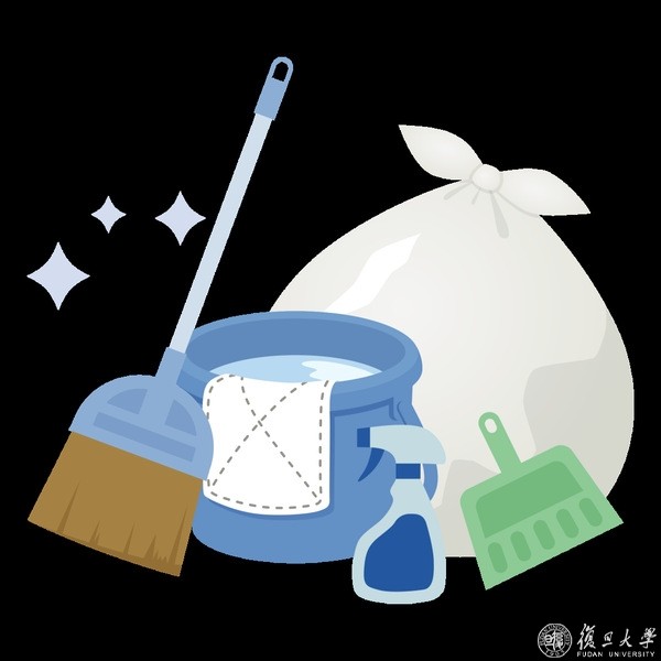 清洁及消毒用品:清洁用品可以使劳动事半功倍,疫情期间也要注重寝室消毒防护。