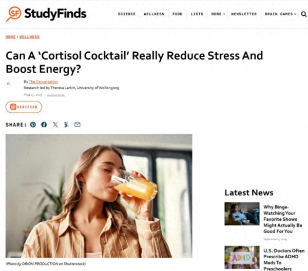 8月27日,美国StudyFinds网站刊登“情绪鸡尾酒”相关内容。