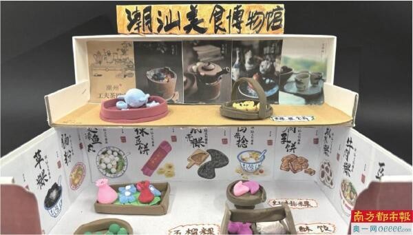 学生们收集旧鞋盒素材,通过查阅资料,构思布局、设计细节等方式,把曾经去过的地方的历史、人文、自然、科技融合进一个小小的立体空间——小小鞋盒中,有学生通过精巧建模复刻潮汕工夫茶艺场景;有以微缩景观再现历史文化名城地标建筑;更有创新者运用光影交互技术让敦煌壁画翩然灵动……这些承载文化基因的创意作品不仅构筑起流动的美育成果,更形成“创作—展示—启发”的良性教育生态,学生们也在动手中完成了文化记忆的接力与传承。