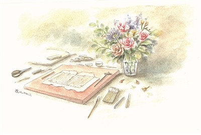 《微相入:妙手修古书》中有近200幅插图,均来自我的手绘,那些小工具和修书的场景,皆是我亲眼所见或亲身经历过的工作日常,描绘它们的过程就像是在心里将喜爱的事物又深切地温习了一遍。