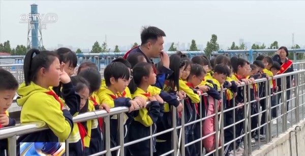 同学们参观格栅区、反应池,兴致勃勃地在出水口观看污水处理的前后对比,了解如何实现净化处理,做到再生利用。