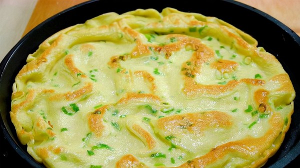 拿出平底锅,平底锅不粘锅刷油,将搅拌好的鸡蛋倒入平底锅中平摊。烙上一两分钟后翻面再烙另一面,一两分钟后即可。