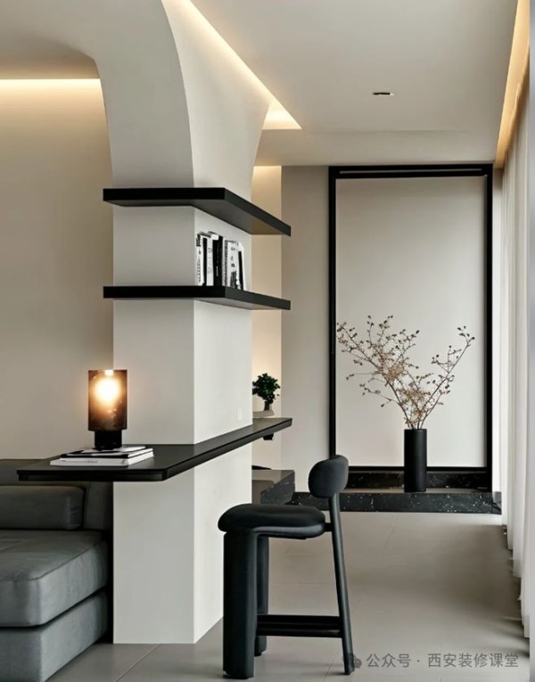 家里一般会有柱子需要通过设计弱化,此时可以巧妙利用转角设计,不仅可以提升颜值弱化柱子的突兀,同时可以让空间更有高级感和设计感,赶紧学起来,自己装修说不定可以借鉴一下。