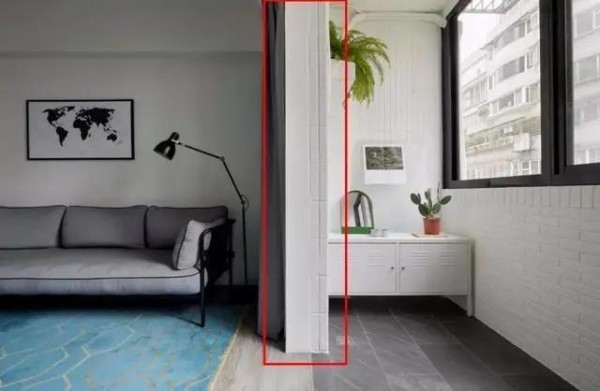 除了门垛,有的户型阳台和客厅之间还有下面这样的墙,有的业主觉得非常土气,阻碍视线和减少了面积,但这样的墙千万不能拆改,因为这面墙是配重墙,也有承重作用,一旦拆改对房子的承重结构都有影响!