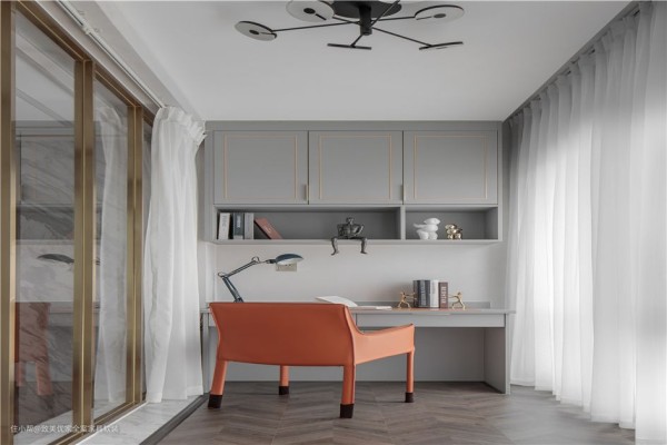 如果你的家需要一个可以办公和看书的小空间,在软装设计中可以将阳台设计为书房,增设柜体和书桌椅。