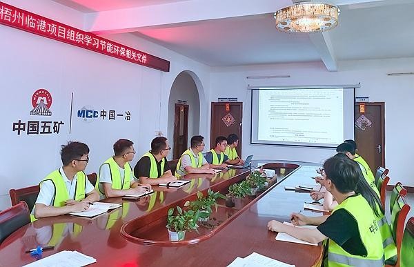 梧州临港项目部集中学习节能减排知识。中国一冶供图