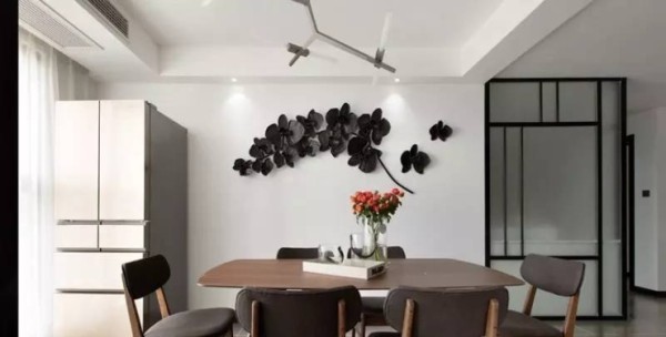 小编喜爱简约风格,这一图中非常套路的用到纯白墙面,以及原木家具。在黑白灰的时代,白中必定需要黑来点缀,比如这一图中的黑色立体花枝。