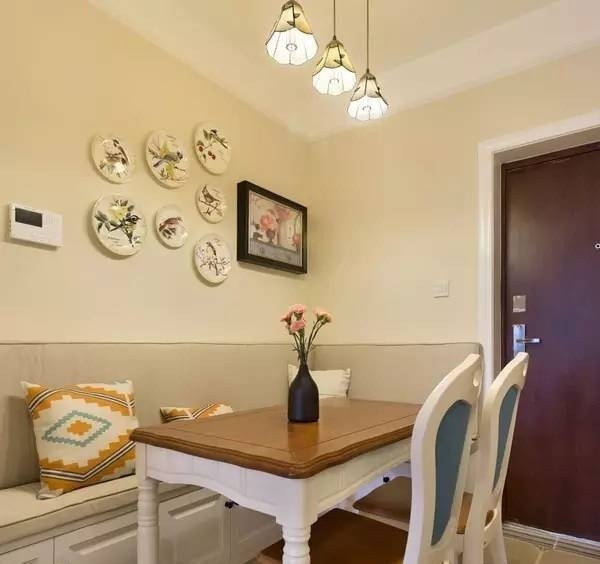 如果你有认真关注土拨鼠效果图专题的话,你会发现在不少案例中,都会见到这样的装饰物。这种碟子装饰物在餐具中比较常见,用作餐厅墙面装饰也很贴切。