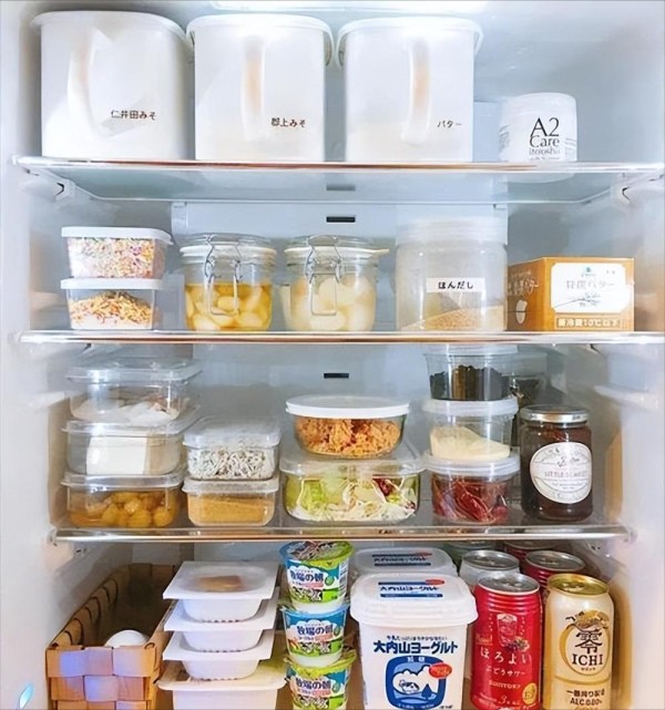 我们在整理食物存放冰箱的时候可以把同品类的食物排成一列,从后往前收纳,类似于贩卖机的原理一样。这样冰箱空间深度被充分利用,且不会遗忘后排的食物。