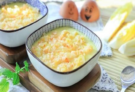 二、虾泥蛋羹:对于已经开始长牙的宝宝来说,虾泥蛋羹是非常合适的辅食了。虾肉不仅易于消化而且含有丰富的蛋白质和微量元素,而鸡蛋更是可以帮助孩子补充人体必需的蛋白质等营养素,这款辅食宝宝可以说喜欢又营养,而且还易于消化。