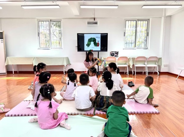 长江网讯(通讯员林梓 刘紫熠) 为丰富社区2至6岁幼儿精神文化生活,搭建亲子互动交流平台,8月24日,佛祖岭街道欣和社区在社区文化中心一楼“阅享间”开展《好饿的毛毛虫》绘本讲读活动。本次活动由社区主理人团队全程主导策划与执行,社工和社区干事协助开展,共吸引 12 组社区亲子家庭参与,在轻松愉悦的氛围中为孩子们开启趣味阅读之旅。