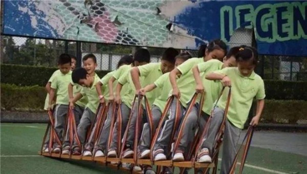每队的家长与孩子一起搭档,共同脚踏大脚板,以最快速度从起点抵达终点,然后与队友接力,用时最短的队伍获胜。