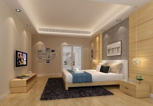 卧室的普通照明,在设计时要注意光线不要过强或发白,最好选用暖色光的灯具,这样会使卧室感觉较为温馨。此外,可在卧室设置局部组合照明,例如在睡床旁设置床头灯,方便个人使用。