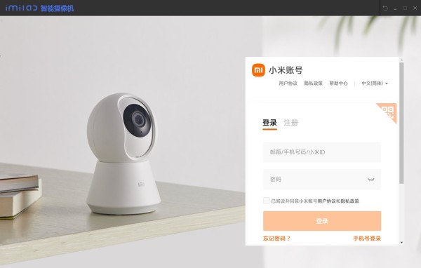 通过下载安装米家摄像机Windows版本之后,首次使用需要登陆小米账号;