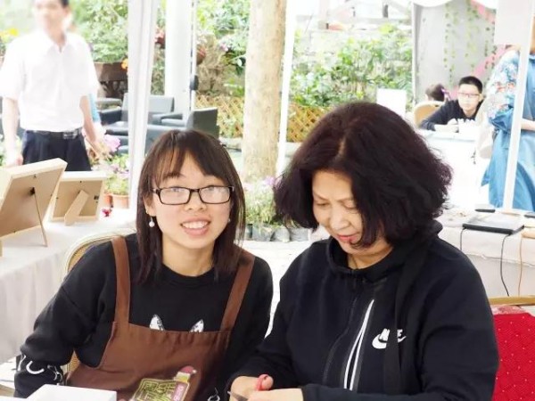 在集市上走了一圈,来到M16的摊位前,看到一对父女正在一起动手做一片树叶,一个5岁的小女孩在木艺老师的指导下,很耐心的用砂纸打磨着刚刚用线锯锯好的树叶状木片,一旁的爸爸用慈爱的眼神看着孩子的一举一动,不时按下手中的快门,其乐融融……