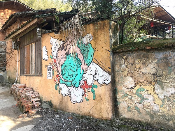 三宝村,艺术家文那的墙画作品二