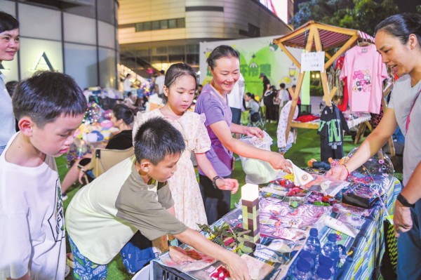 6月1日,在海口日月广场,城市循环市集吸引了不少家长带着孩子前来。记者 苏弼坤 摄