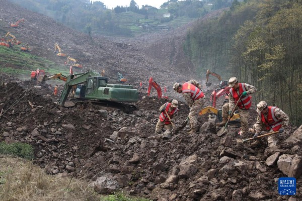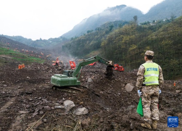 2月10日,武警官兵在筠连县山体滑坡现场搜救。新华社发(郑磊 摄)