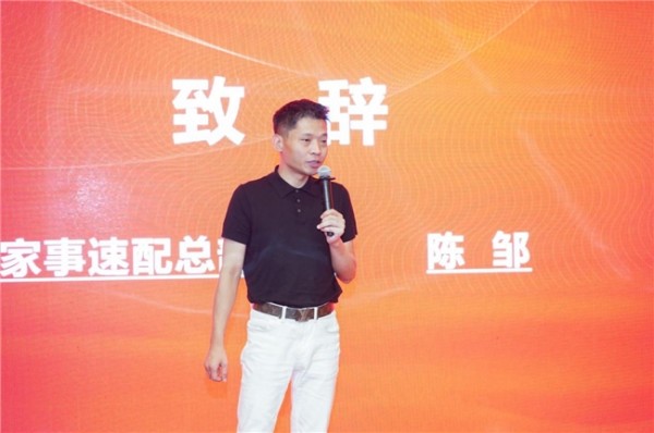 随后,福建总部CEO陈总发表致辞。他从行业趋势与品牌战略出发,深入解读了家事速配“B2S2H”模式的核心优势,以及总部对各地合作伙伴的赋能支持,为在场嘉宾描绘了清晰的发展蓝图,赢得阵阵掌声。