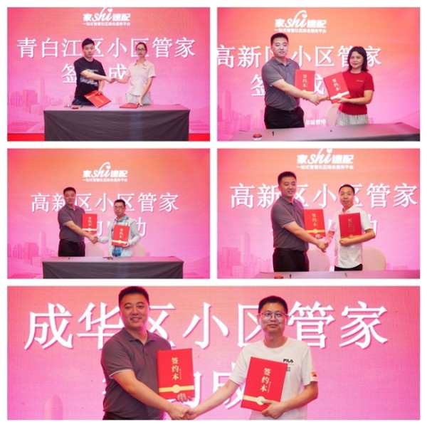 成都运营中心王总与青白江区负责人廖总与多位社区管家签约,现场掌声不断,每一份签约都承载着信任与期待,让家事速配的社区服务末梢更紧密地扎根基层。每一份合作的达成,都凝聚着对“共建美好社区”的期待,让这份事业在众人的参与中愈发蓬勃。