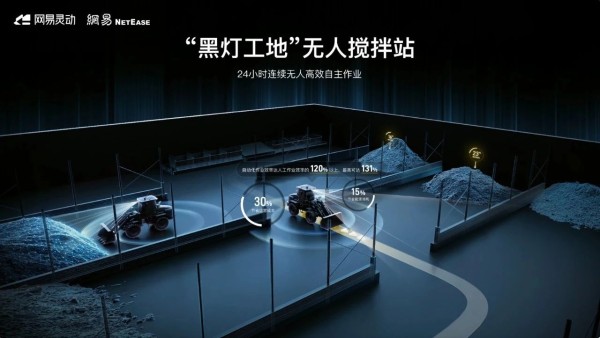 目前,网易灵动装载机器人已在浙江、甘肃等地的搅拌站,上海浦东、临港的无人化施工现场,以及南京港、舟山港等港口项目中实现规模化应用。其自主研发的激光融合感知、高精度料面感知技术,支持机器人在无光源环境下完成精准作业,显著提升施工安全性和连续性。