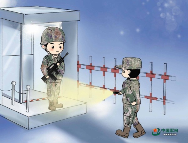 “前几天有机关干部查铺查哨时,顺便抽问了哨兵一些应知应会知识,有战友没有及时回答出,被要求继续加强学习。”了解情况时,这名哨兵解释说,大家白天训练工作任务较重,为了避免再出现类似情况,只好利用夜晚站岗时间背记应知应会相关内容。