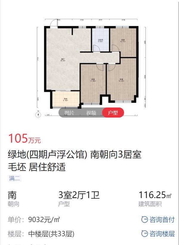116.25㎡ 3室2厅1卫