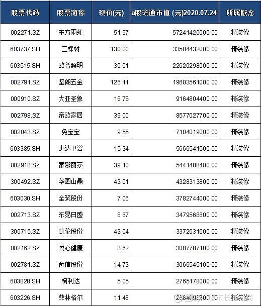 精装修概念股票一览表(建议收藏) 精装修概念股有哪些 2020年,中国a股市场的精装修概念股一共有26家,其中上海上市公司8家,深圳上市股票18家。 精装...
