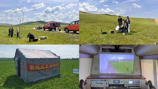 草原扑火实操环节中,上库力街道办迅速响应,派出2辆水车、6名应急队员,携带2台风力灭火机和铁锹等灭火装备,开展火情侦察、火势压制等实战操作,与应急通讯演练形成联动。各参演单位依托小鱼易联AE380移动会议终端,实时共享现场画面,开展远程指挥调度,检验了跨区域协同作战能力。