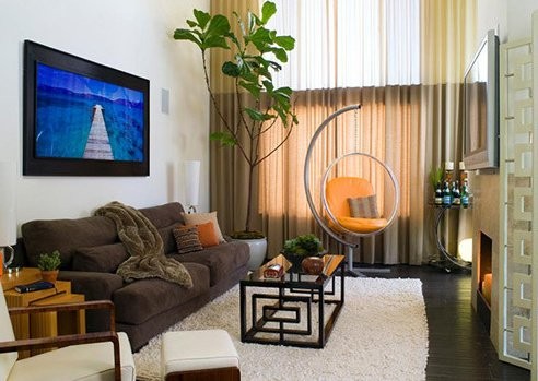 【落地窗】客厅空间小还可以通过采用落地窗设计来扩大空间视觉效果,当然这需要有足够高的层高,通过将视线转移到墙上,能够有效扩大空间。另外落地窗的设计保证了室内足够的采光,明亮的空间也会显得比较大。