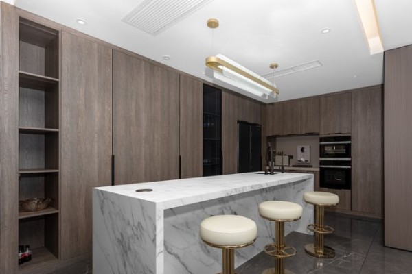岛台是个非常有体量感的空间元素,与建筑结构结合也能碰撞出多样的形式感。既创造了视觉美观,也能弥补一些承重结构突兀难处理的缺陷。