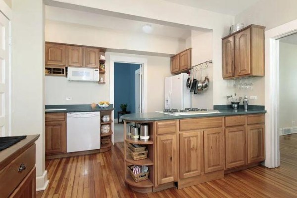 中岛距离橱柜至少达到75cm,保证一个人在厨房的活动不受影响,如果达到90cm,便于打开橱柜门。