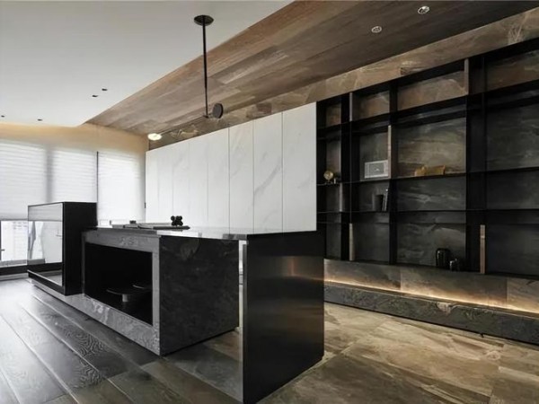 常用于开放式厨房或者开放式书房中,岛台的作用除了分隔厨房/书房和客餐厅的区域,更是增强两个区域的联动。