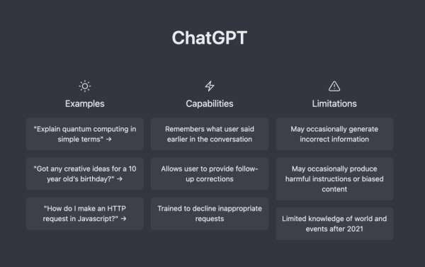 聊天中,ChatGPT的“自我介绍”十分坦诚:能记住早些时候的对话,可以根据用户的提示更正回答方向,但偶尔也会出错,数据库的实时性有待考量。