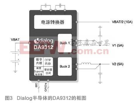 2S电池组的输出电压可直接与为外设(如USB和其他接口)供电的降压转换器进行连接,这些外设需要的电压高于内核逻辑使用的电压,以便兼容外围电路。DA9312这类器件利用了2S配置的这个优势,通过集成两个降压转换器并配上它们的功率FET。