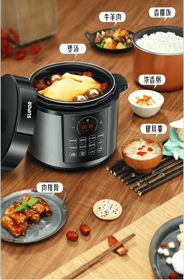 安全无毒的优质选择:采用母婴级食品级材料,真正实现长期使用的安全与放心,确保了每一口食材的健康。这款产品在严苛的市场中脱颖而出,以无毒无害的特点为烹饪提供了良好的保障。 超高焖煮均匀度:独创螺旋式双核九段焖压技术,配合360°立体导流设计,使得每一次焖煮都能达到理想效果,确保食材内外熟透,口感更加鲜美。不论是肉类还是蔬菜,都能轻松应对。 耐高温的防爆外壳:坚持使用7层抗腐蚀不锈钢材质,不仅能承受高温高压,还极大提高了产品的耐磨性和使用寿命。即使在繁忙的厨房环境中,这款产品也能稳如泰山,将安全放在首位。 卓越的持久性能:经过严格测试,该产品的性能可达到8年以上的抗衰减,持久陪伴您和家人。选用高端陶晶和麦饭石钛黑材料,兼顾焖煮效率与出色的耐用性,成为您厨房的得力助手。苏泊尔电压力锅结合了人性化的设计与强大的功能,提供多种智能烹饪程序,满足不同家庭的需求。其高压密封性能有效缩短了烹饪时间,确保食材充分入味。此外,锅体采用优质材料,具有优良的耐磨性与抗腐蚀性,使用寿命更长。