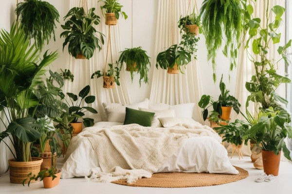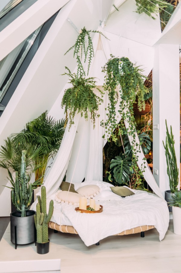 想要在卧室营造放松舒缓的入睡氛围?少不了以温柔、静谧为主的绿植。例如散尾葵,枝干轻盈柔软,纤细四散的羽状叶片,摇曳出一种温柔的气质;垂盆蕨类植物也可以,悬挂在床头,既能净化空气还能助眠;喜欢小巧绿植的话,不妨将多肉植物进行组合搭配,各种形态、大小、颜色汇聚在花盆里,像个微型小花园般超治愈的。