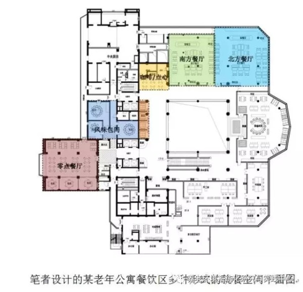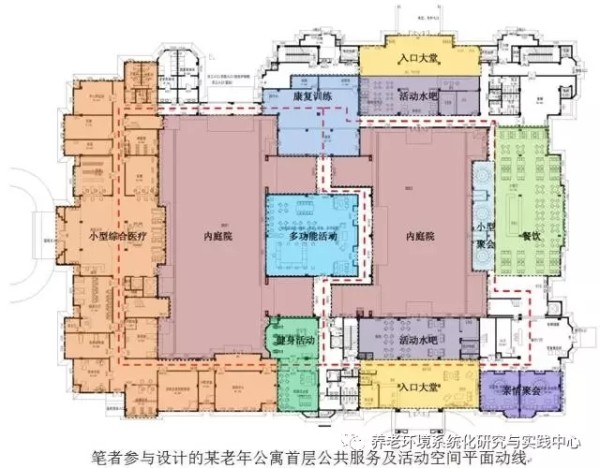 老年公寓中的公共活动空间是复合型的,在设计上需强调串联各功能空间动线的闭合性和开放性。