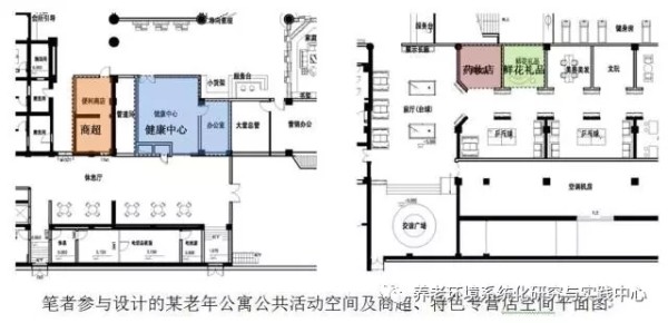 商业购物空间要满足老人的日常生活需要,外部城市配套服务设施中往往针对老年人的商业设施比较匮乏,老年公寓中可设置一些小型商超、老年用品专卖店、小型药店、养生食品店等。一方面满足老年人就近购物的需要,另一方面使老年公寓具有多元化经营和业态服务延展增值的可能。