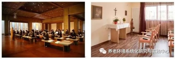 信仰服务功能:我国相当一部分老年人具有宗教信仰,特别是一些传统宗教地区。这些老年人也往往需要一些生活上的精神支撑和归属感。这类功能空间可独立设置于相对安静私密的空间内,不同信仰活动空间可相对独立,对于空间有限的项目,可以通过划分使用时间段或预约空间使用的方法,共同利用同一空间进行活动。